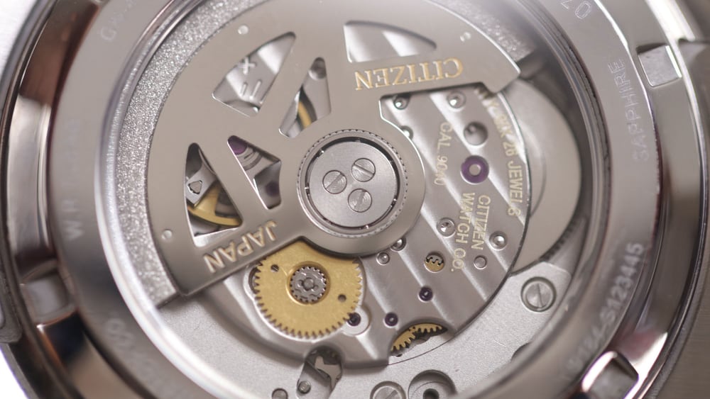 Với mặt đáy trong suốt, Citizen NB4024-95A có thể phô diễn được thiết kế tỉ mỉ và đẹp mắt của bộ máy. Caliber 9040 mang đến hoạt động nhịp nhàng giúp kim giây trôi mượt mà, mang lại sự thích thú cho người dùng. Citizen NB4024-95A cũng có độ chính xác cao với sai số 15 giây/ngày.