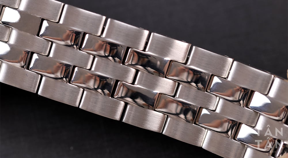 Dây đeo của đồng hồ nam Citizen NH7501-85A được làm từ thép đúc đặc với thiết kế 5 mắt mềm mại trên cổ tay nhưng vẫn đảm bảo độ chắc chắn, không đứt gãy khi va đập mạnh. Nhà sản xuất còn tỉ mỉ đánh bóng và đánh phay xước xen kẽ để tạo nên hiệu ứng chuyển sáng bắt mắt khi người dùng chuyển động cổ tay.