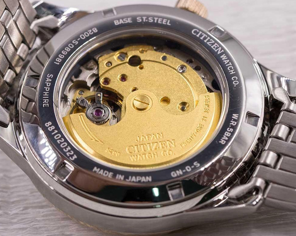 Citizen NH7504-52E được trang bị bộ máy cơ Automatic Calibre 8200. Được ra mắt từ năm 1986 nhưng qua hơn 30 năm nâng cấp và cải tiến, dòng máy 8200 vẫn giữ được phong độ bền vững với khả năng vận hành rất tốt. Thông số cụ thể của bộ máy trên Citizen NH7504-52E: