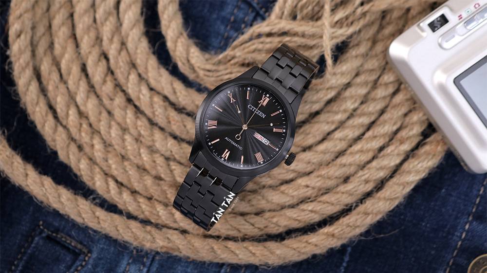Tổng thể thiết kế đơn giản sang trọng phủ màu đen cá tính của đồng hồ Citizen NH7505-84E