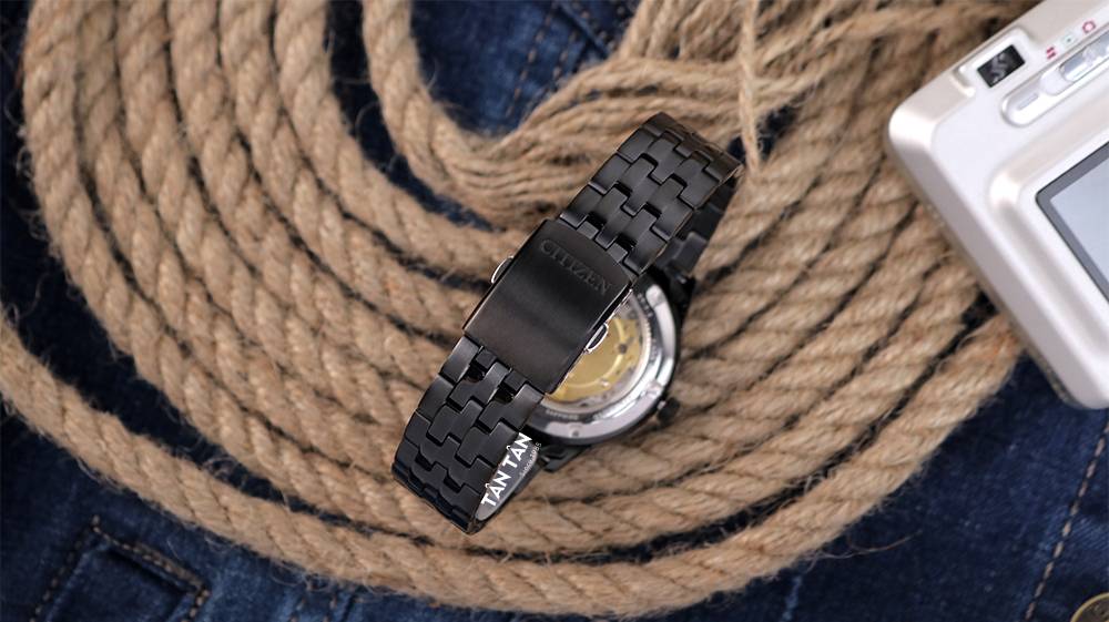 Dây đeo của Citizen NH7505-84E được làm từ thép đúc đặc với thiết kế 5 mắt mềm mại trên cổ tay nhưng vẫn đảm bảo độ chắc chắn, không đứt gãy khi va đập mạnh. Nhà sản xuất sử dụng công nghệ mạ thẩm thấu ion đen trên bề mặt dây đeo tạo nên một tổng thể quyền lực, quyến rũ với các mắt dây đánh phay xước tạo nên hiệu ứng chuyển sáng bắt mắt khi người dùng chuyển động cổ tay.