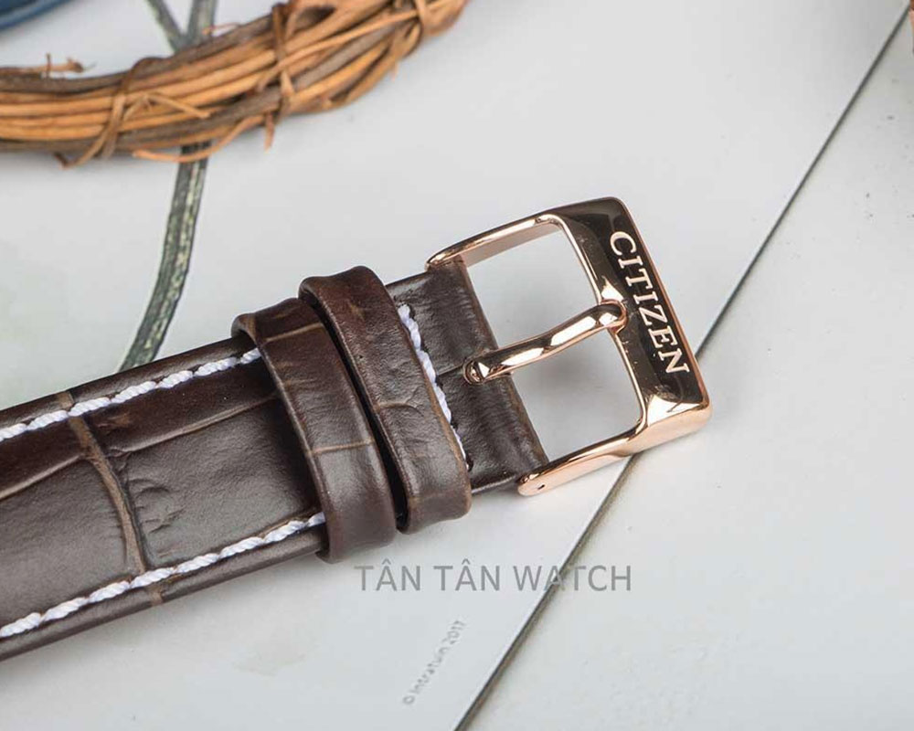 Đi kèm với dây da là khóa cài đơn giản thường thấy ở những mẫu đồng hồ Citizen dây da, dễ dàng đeo vào - tháo ra