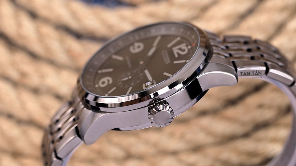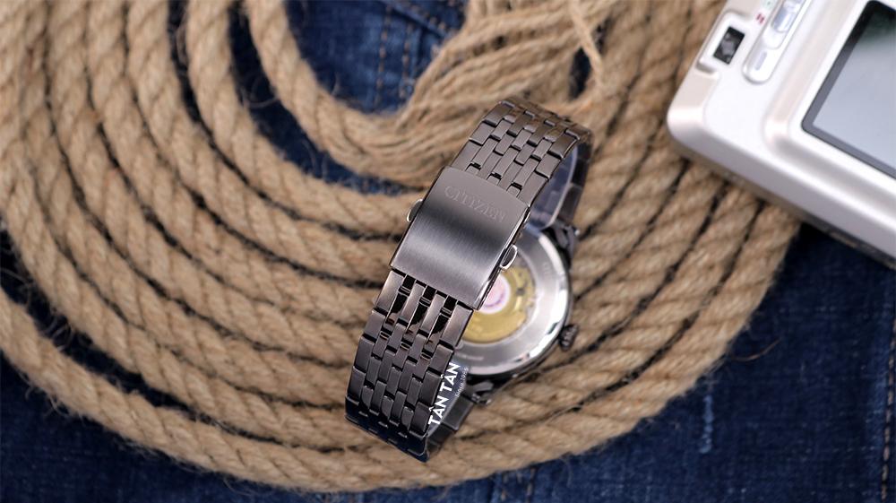 Cuối cùng, đi kèm với chiếc đồng hồ nam thời trang này là dây đeo được làm từ chất liệu thép không gỉ cao cấp được thiết kế 7 mắt nhỏ nhắn, liên kết với nhau chặt chẽ và ôm sát vào tay. Khi mang sẽ tạo cảm giác dễ chịu và cực kỳ tôn da, liền lạc với dây đeo là phần cuối dây đeo là khóa gập thường thấy trên đồng hồ kim loại. Loại khóa này rất tiện dụng, dễ dàng tháo lắp, tạo sự thuận tiện cho các quý ông khi dùng. Các nghệ nhân nhà Citizen đã khéo léo phủ màu đen toàn bộ để mang đến tổng thể thống nhất, kết hợp kỹ thuật đánh bóng xen kẽ sớ mờ tạo nên diện mạo hoàn hảo cho đồng hồ, hạn chế trầy xước và giữ màu bền đẹp với thời gian.