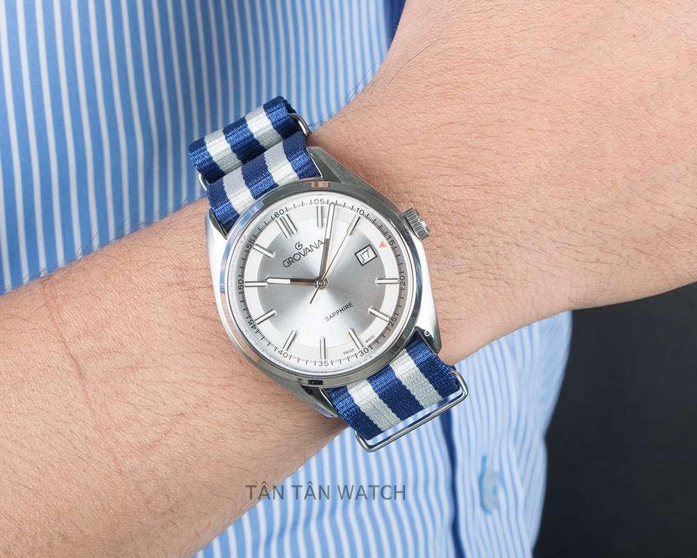 Để tôn lên sự thanh lịch vốn có của thương hiệu, mẫu Grovana 1585.1632 mang cho mình bộ vỏ thép không gỉ kết hợp dây vải nhiều màu tiệm cận thị trường. Với đường kính 42mm phù hợp với đa số cổ tay nam giới ở Việt Nam từ 16cm trở lên. Bề mặt bộ vỏ được đánh xước phay điểm niềng bezel sáng bóng, kết hợp mặt kính sapphire trong suốt, chống trầy xước tốt là một trong những yếu tố giúp đồng hồ sáng bóng, đẹp mắt và mặt số hiện lên rõ nét hơn.