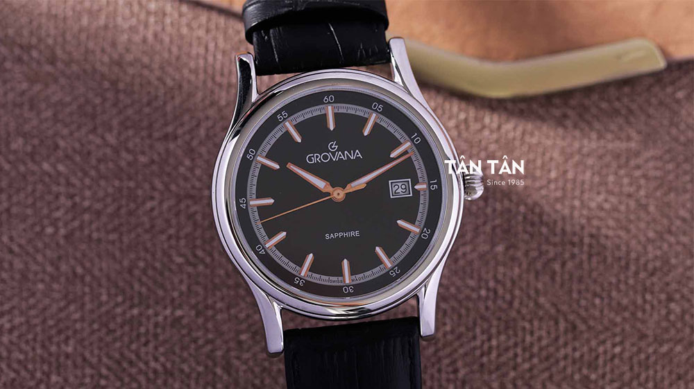 Grovana 1734.1524 nằm trong bộ sưu tập Traditional là mẫu đồng hồ cổ điển được chế tác và hoàn thiện tại Thụy Sĩ, nổi tiếng với thiết kế thanh lịch đơn giản. Tổng thể mặt số và dây da đồng hồ mang tông đen sang trọng, với mức giá “bình dân” đáng sở hữu cho việc định hình phong cách lịch lãm, trưởng thành cho phái mạnh.