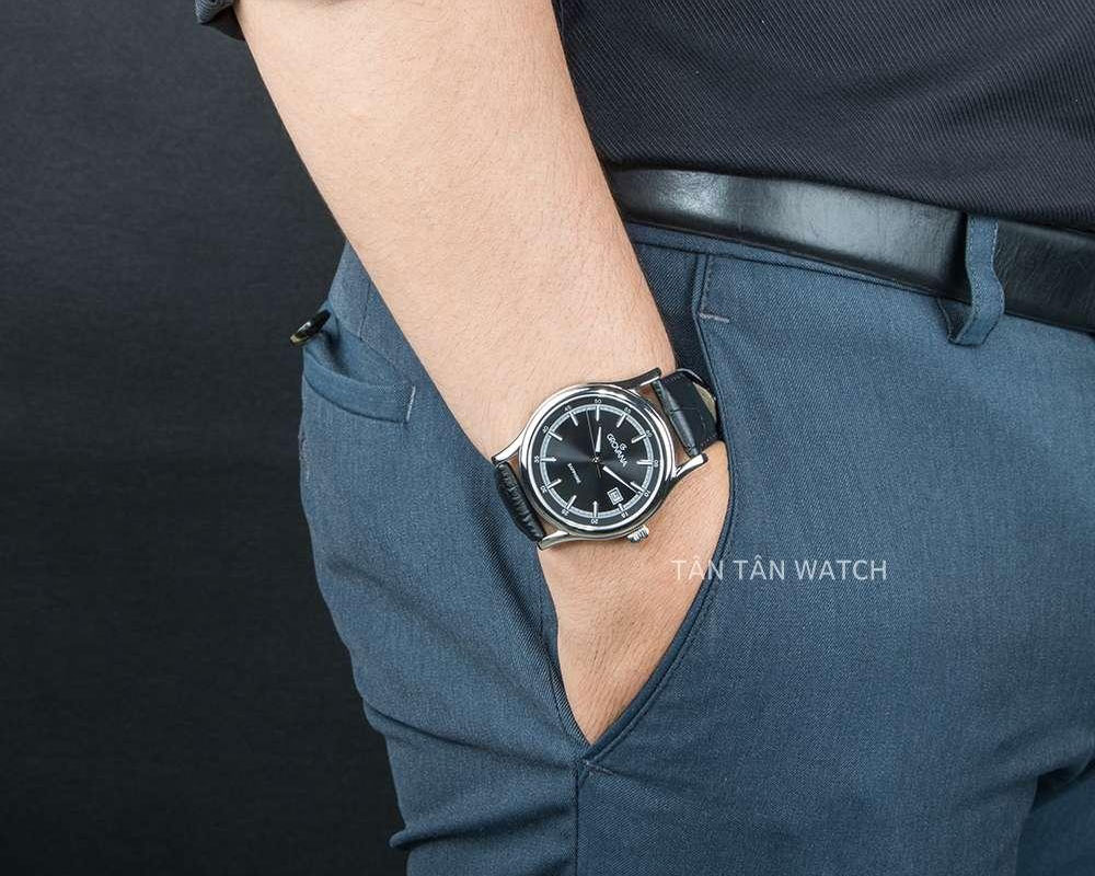 Bộ vỏ thép với đường kính 41mm là độ dày 8mm chuẩn sự thanh mỏng, không kém phần nhẹ nhàng kết hợp bộ dây da đen lịch lãm, nhẹ nhàng trên cổ tay cho các anh sự thoải mái khi vận động. Sự tinh tế còn được điểm qua chi tiết núm chỉnh giờ tròn với các vân rãnh khắc thẩm mỹ, tăng độ sang trọng cho đồng hồ và chỉ cần kéo núm 1 nấc để chỉnh ngày và 2 nấc để chỉnh giờ.