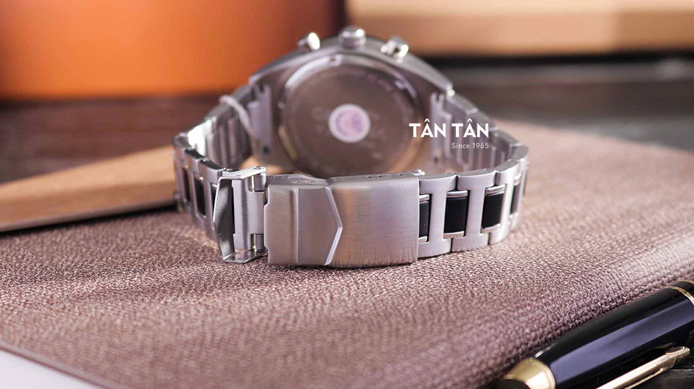 Sử dụng thép 316L cho toàn bộ dây đeo và bộ vỏ. Niềng đồng hồ là thép không gỉ sơn tĩnh điện màu đen có hiển thị 60 giây. Bộ dây mix giữa thép màu trắng bạc với những mắc dây màu đen to bản nằm dọc liên kết giữa, khóa gập kép với hai nút gài chắc chắn có thể tăng giảm kích thước. Toàn bộ đánh xước mờ tăng tính thể thao khỏe mạnh cho người đeo.