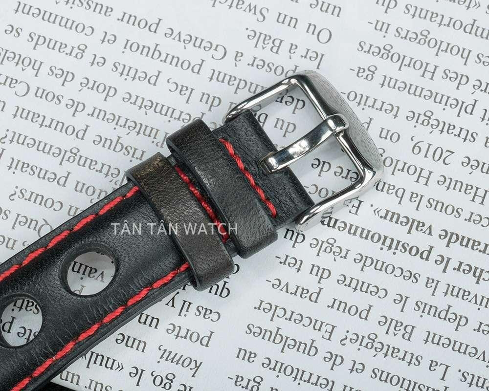 Sử dụng thép 316L bộ vỏ với dây da với cách hoàn thiện mang phong cách thể thao cho các chàng trai trẻ. Niềng đồng hồ là thép không gỉ sơn tĩnh điện màu đen có hiển thị 60 giây làm điểm nhấn cho bộ vỏ cả mặt số. Toàn bộ bề mặt bộ vỏ đánh xước mờ tăng tính thể thao khỏe mạnh cho người đeo. Đi kèm là dây da mềm nhẹ khoét lỗ lớn vừa năng động vừa thoáng khi nếu đeo trong khoảng thời gian dài. Chọn dây màu đen điểm thêm 2 đường chỉ may viền màu đỏ nổi bật liền lạc bởi khóa cài đơn giản, dễ dùng.