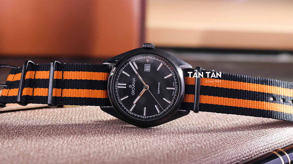 Để tôn lên sự thanh lịch vốn có của thương hiệu và bộ sưu tập Traditional, mẫu Grovana 1585.1677 mang cho mình bộ vỏ thép không gỉ kết hợp dây vải nhiều màu tiệm cận thị trường thời trang. Với đường kính 42mm phù hợp với đa số cổ tay nam giới ở Việt Nam từ 16cm trở lên. Bề mặt bộ vỏ được mạ thẩm thấu ion đen với công nghệ mạ PVD điểm niềng bezel sáng bóng, kết hợp mặt kính sapphire trong suốt, chống trầy xước tốt là một trong những yếu tố giúp đồng hồ sáng bóng, đẹp mắt và mặt số hiện lên rõ nét hơn.