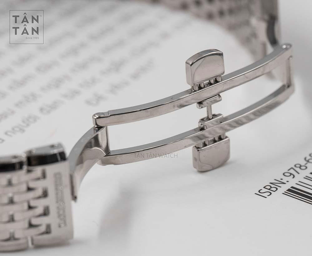 Dây đeo của Longines L4.705.4.58.6 cũng được chế tác bằng thép không gỉ thông qua thiết kế những mắt xích nhỏ được đan xen vào nhau tạo thành một tổng thể di chuyển mềm mại và uyển chuyển trên cổ tay của những chàng trai. Được đánh bóng tỉ mỉ bởi công nghệ chế tác tiên tiến và hiện đại, dây đeo Longines L4.705.4.58.6 được hoàn thiện hoàn hảo trong từng chi tiết cho dù là nhỏ nhất. Đi cùng dây là khóa cân bằng với nút bấm giúp cho Longines L4.705.4.58.6 thành một khối thiết kế liền mạch, thao tác đeo vào - tháo ra đồng hồ trên tay của các chàng cũng được thực hiện rất dễ dàng.