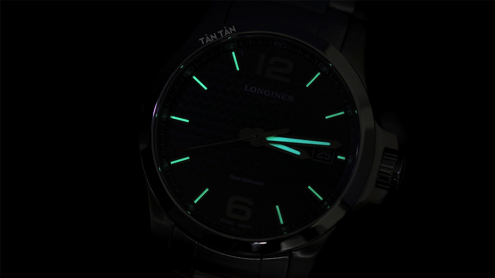 Bộ kim và các mốc giờ hoàn thiện tinh xảo được phủ dạ quang SuperLuminova Thụy Sĩ hỗ trợ xem thời gian trong bóng tối