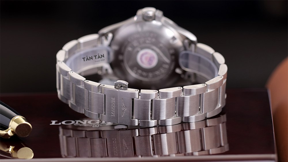 Để hoàn thiện tổng thể, Longines Conquest V.H.P L3.716.4.66.6 còn được trang bị dây đeo kim loại bằng thép không gỉ cao cấp có độ bền cao thuộc dòng Longines dây kim loại. Các nghệ nhân sử dụng kỹ thuật đánh phay xước bằng công nghệ cao giúp dây đeo luôn sáng bóng và bền màu với thời gian. Ngoài ra, dây đeo còn sở hữu khóa đôi được thiết kế chốt gấp ba lần an toàn và mở theo cơ chế đẩy, dễ dàng tháo ra và lắp vào, giúp cố định vừa vặn và chắc chắn trên cổ tay.