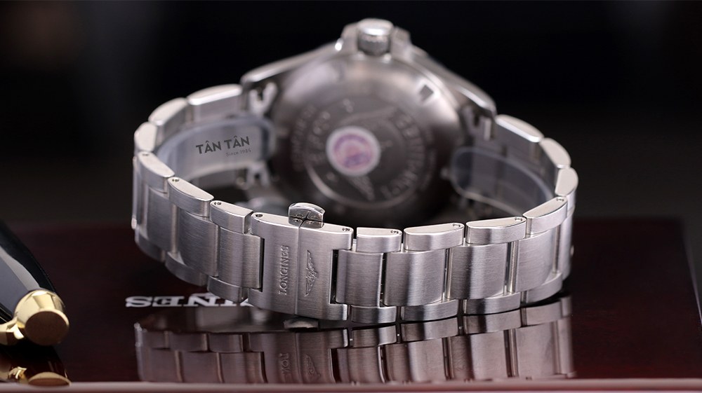 Để hoàn thiện tổng thể, Longines Conquest V.H.P L3.716.4.76.6 còn được trang bị dây đeo kim loại bằng thép không gỉ cao cấp có độ bền cao. Các nghệ nhân sử dụng kỹ thuật đánh phay xước bằng công nghệ cao giúp dây đeo luôn sáng bóng và bền màu với thời gian. Ngoài ra, dây đeo còn sở hữu khóa đôi được thiết kế chốt gấp ba lần an toàn và mở theo cơ chế đẩy, dễ dàng tháo ra và lắp vào, giúp cố định vừa vặn và chắc chắn trên cổ tay.
