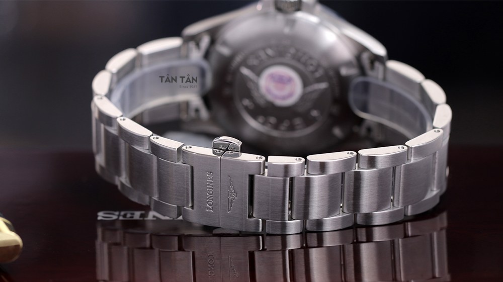 Để hoàn thiện tổng thể, Longines Conquest V.H.P L3.719.4.96.6 còn được trang bị dây đeo kim loại bằng thép không gỉ cao cấp có độ bền cao. Các nghệ nhân sử dụng kỹ thuật đánh phay xước bằng công nghệ cao giúp dây đeo luôn sáng bóng và bền màu với thời gian. Ngoài ra, dây đeo còn sở hữu khóa đôi được thiết kế chốt gấp ba lần an toàn và mở theo cơ chế đẩy, dễ dàng tháo ra và lắp vào, giúp cố định vừa vặn và chắc chắn trên cổ tay.
