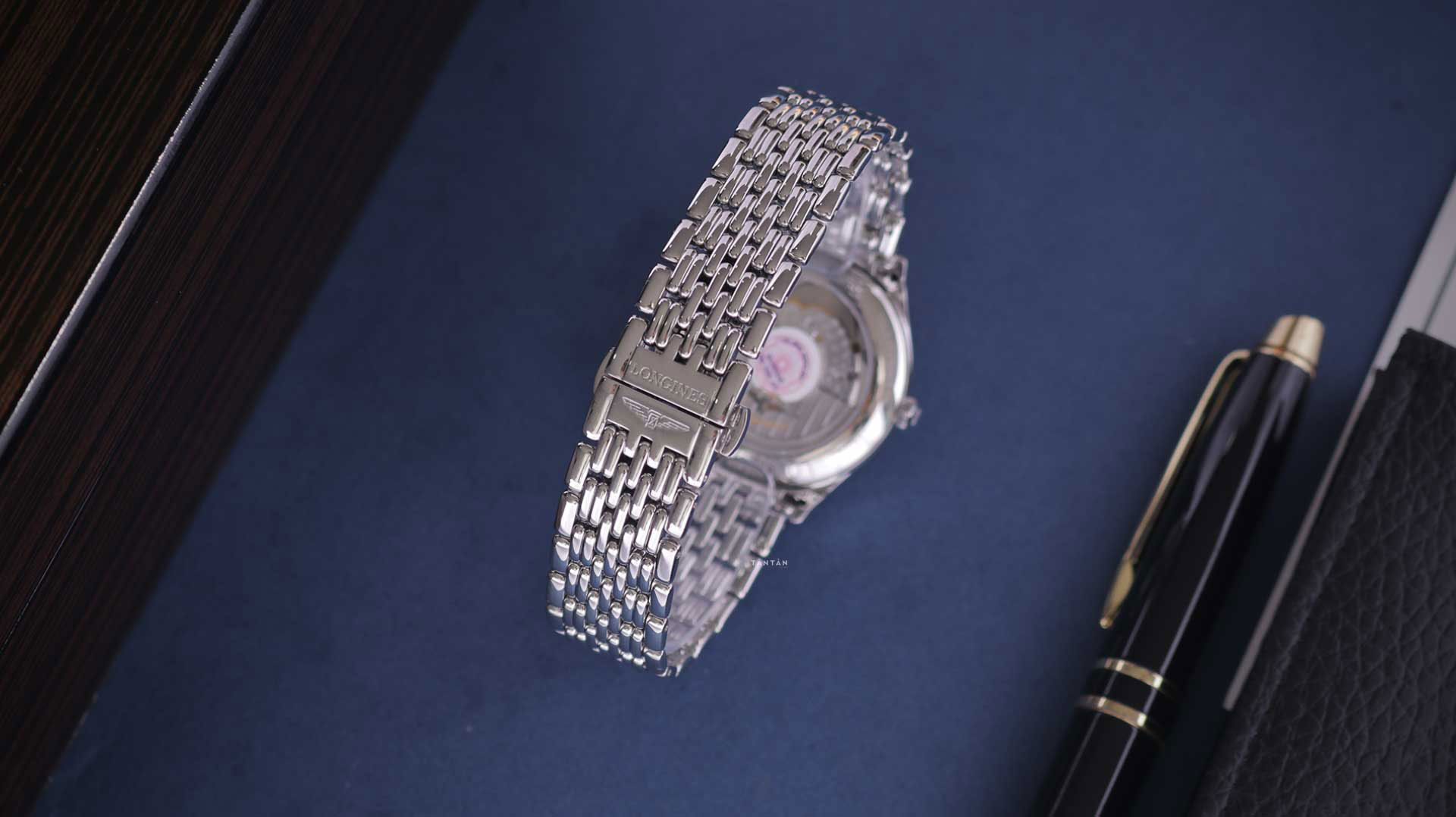 Điểm nổi bật nhất ở chiếc đồng hồ Longines L4.860.4.92.6 chính là bộ dây đeo được chế tác bằng thép không gỉ vật liệu cao cấp được đánh bóng phủ satin toàn bộ giúp cho đồng hồ có vẻ ngoài sáng hơn hẳn các thương hiệu đồng hồ khác. Đây cũng là một kiểu thiết kế dây nổi tiếng riêng biệt của thương hiệu Longines, với những mắt dây nhỏ tròn như hạt gạo liên kết với nhau tạo cho người đeo cảm giác nhẹ nhàng và mềm mại trên cổ tay các quý ông.