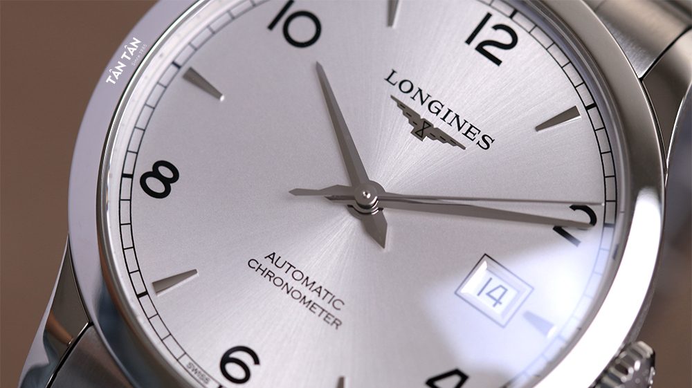 Thêm vào đó, Longines L2.820.4.76.6 còn trang bị chức năng lịch ngày ở góc 3 giờ. Phía dưới gốc 6h đồng hồ được in to rõ dòng chữ chứng nhận độ chính xác “Chronometer” danh giá của COSC để khẳng định cho một con đồng hồ chất lượng vượt trội.