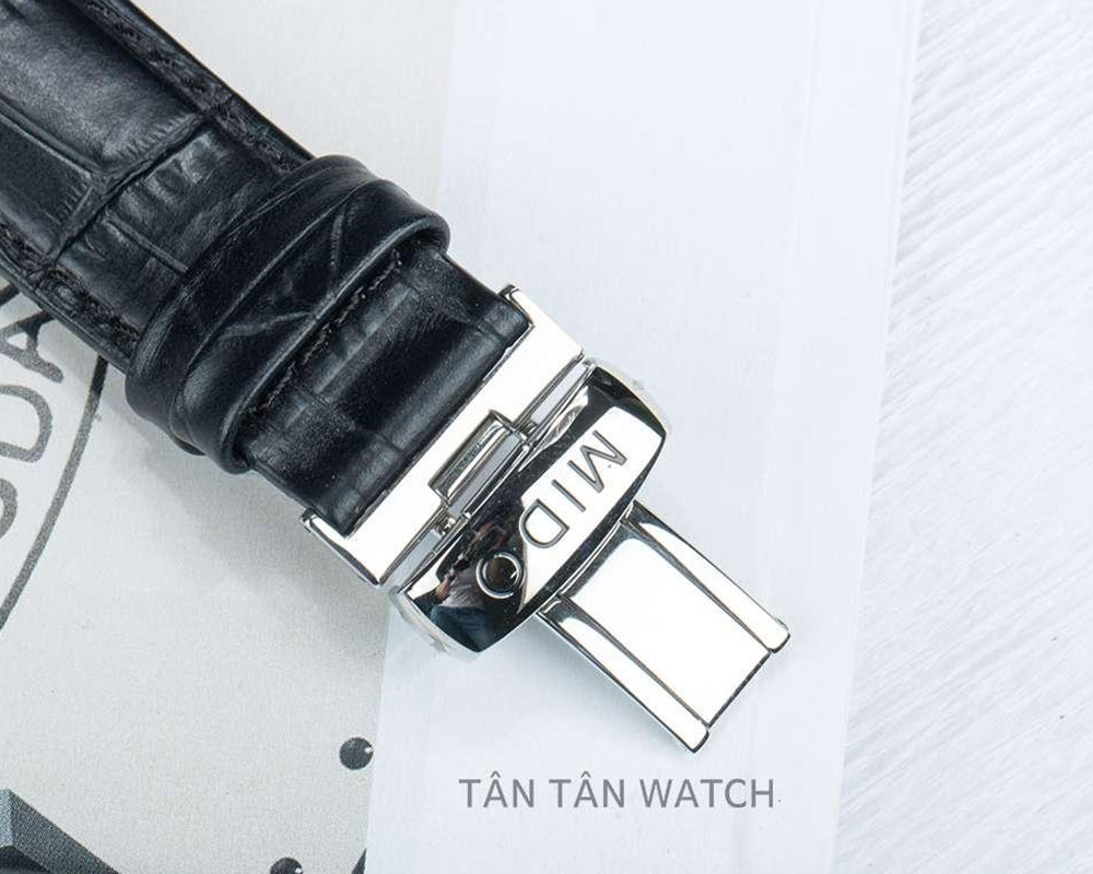 Đi kèm với dây đeo là bộ khóa cài làm bằng thép không gỉ sang trọng. Trên khóa có khắc chìm dòng chữ MIDO sắc nét càng làm tăng thêm tính thẩm mỹ. Mẫu khóa này có thể tháo ra - mang vào một cách nhanh chóng và tiện lợi, chắc chắn trên cổ tay.