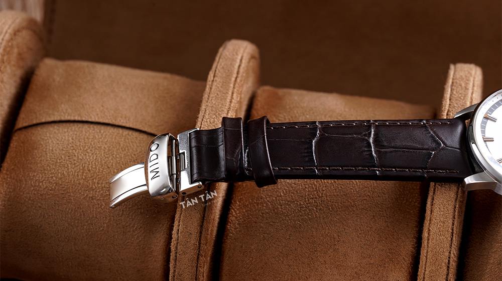 Đi kèm với dây đeo là bộ khóa cài làm bằng thép không gỉ sang trọng. Trên khóa có khắc chìm dòng chữ MIDO sắc nét càng làm tăng thêm tính thẩm mỹ. Mẫu khóa này có thể tháo ra - mang vào một cách nhanh chóng và tiện lợi, chắc chắn trên cổ tay. Đây là loại khóa thường sử dụng trên những mẫu dây da cao cấp, giúp cân bằng và chống gãy hoặc hư dây.