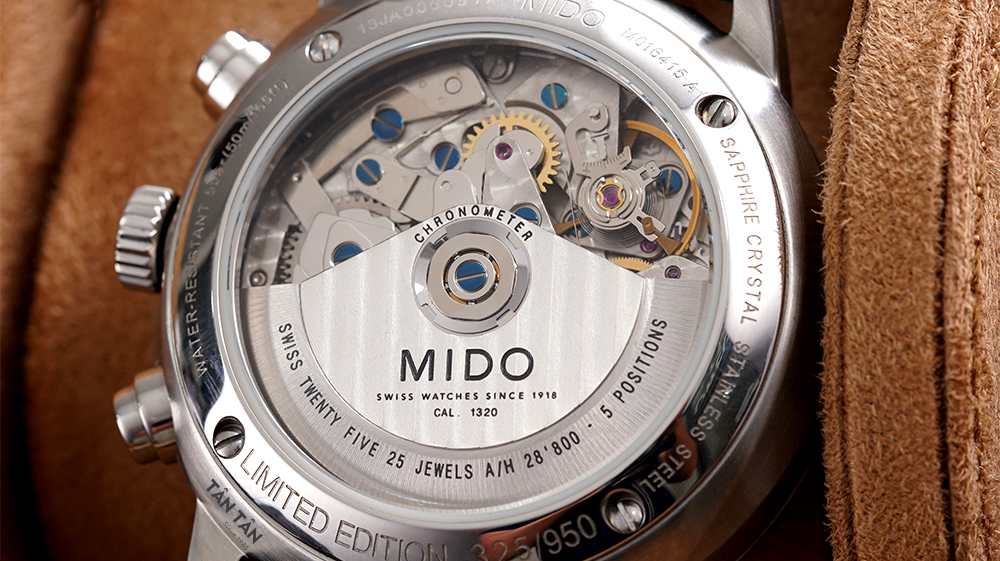 Mido M005.614.11.061.00 sở hữu bộ máy cơ Automatic Caliber 1320 được kiểm định chặt chẽ, nghiêm ngặt. Bộ máy này gồm 25 chân kính, tần số dao động 28.800 VPH giúp đồng hồ hoạt động chính xác cùng những chuyển động mượt mà. Khả năng dự trữ cót của bộ máy hơn 48 giờ cho phép đồng hồ hoạt động ổn định trong khoảng thời gian dài. Người dùng có thể chiêm ngưỡng những chuyển động nhịp nhàng của các bánh răng cân bằng bởi thiết kế “exhibition” phía sau bộ vỏ thông qua lớp kính sapphire trong suốt.