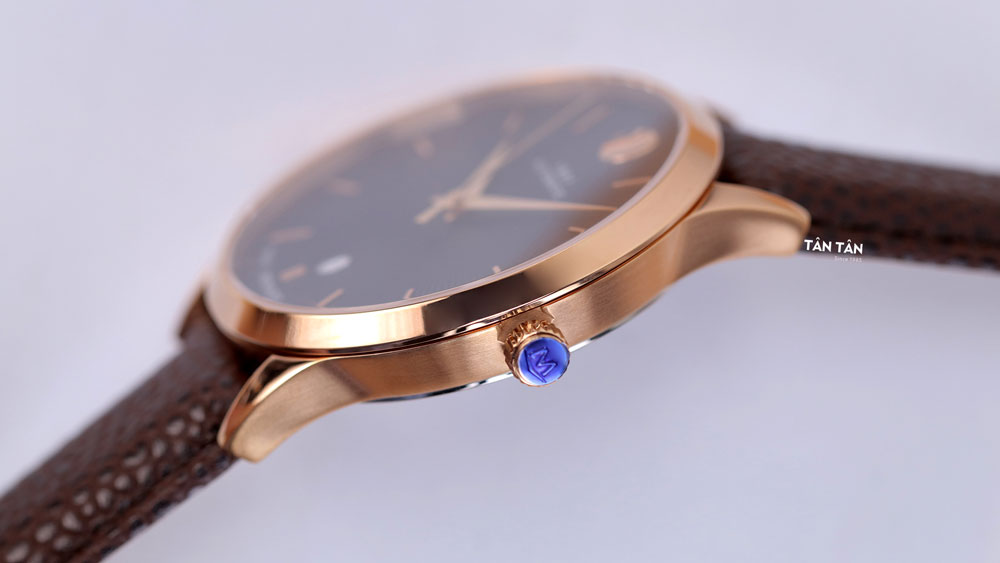 Ngoài ra, nhà sản xuất còn mạ màu vàng hồng bằng kỹ thuật PVD kết hợp đánh phay xước cạnh bên rất hiện đại kết hợp bề mặt bóng loáng của viền bezel mang lại hiệu ứng chuyển sáng bắt mắt, thể hiện sự cao cấp của đồng hồ.
