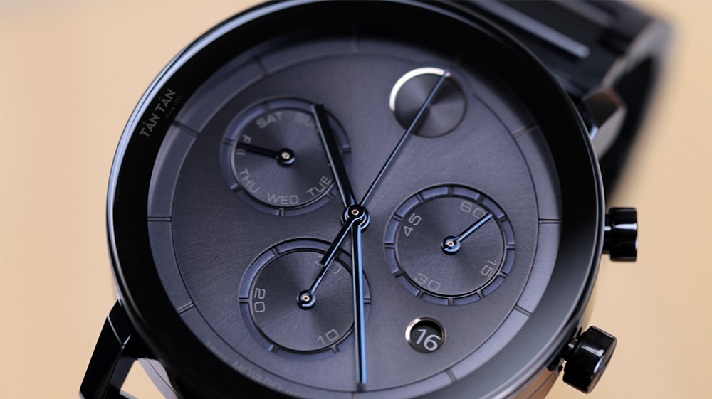 ✓ Mặt số thiết kế kiểu multi-dial hiện đại đậm chất Movado: Ô lịch thứ, 60 giây và 30 phút.