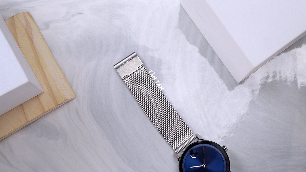 Movado 3600901 sở hữu mẫu dây đeo với thiết kế dạng lưới độc đáo và có giá trị thẩm mỹ rất cao. Chất dây được làm bằng thép không gỉ, đánh bóng ánh bạc từ chất liệu, chi tiết này giúp cho dây đeo Movado 3600901 không chỉ sở hữu một thiết kế đẹp, mà còn được trang bị khả năng bền bỉ và mạnh mẽ theo thời gian. Đi cùng với đây lưới là khóa gập chắc chắn và khắc khắc chìm tên BST Movado Bold đầy tinh tế, hài hòa với tổng thể thiết kế của chiếc đồng hồ này.