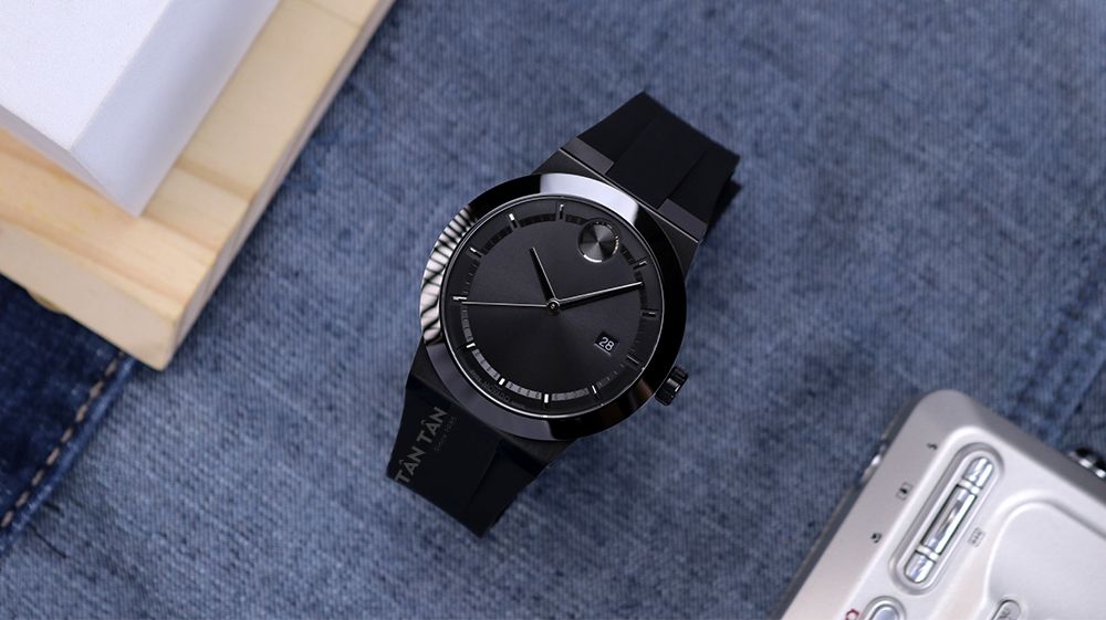 2. Mặt số màu đen tối giản với chấm tròn đặc trưng của thương hiệu