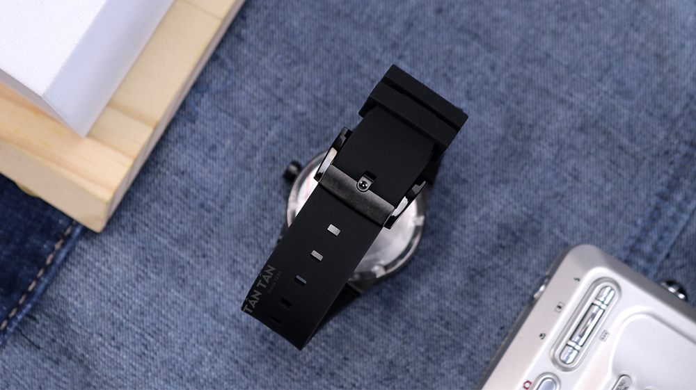 Dây cao su đen bền nhẹ, dẻo dai cùng khóa cài tiện lợi chắc chắn trên cổ tay