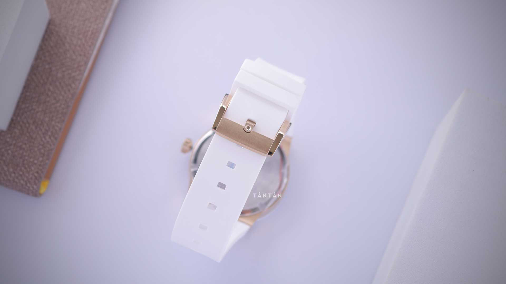 Bên cạnh đó, Movado 3600899 được trang bị dây đeo cao su màu trắng với độ dẻo cao, bền bỉ, chắc chắn được cố định bằng khóa cài và có khả năng kháng lại tác động vật lý khá tốt. Hơn nữa, dây đồng hồ cao su chính hãng còn có kích thước khá gọn nhẹ cùng chất liệu cao su đàn hồi, không thấm nước giúp ôm trọn cổ tay tạo cảm giác vừa thoải mái vừa chắc chắn khi mang trên tay. Tổng thể chiếc đồng hồ này rất phù hợp với phong cách thể thao, trẻ trung dành cho những chàng trai năng động cá tính.