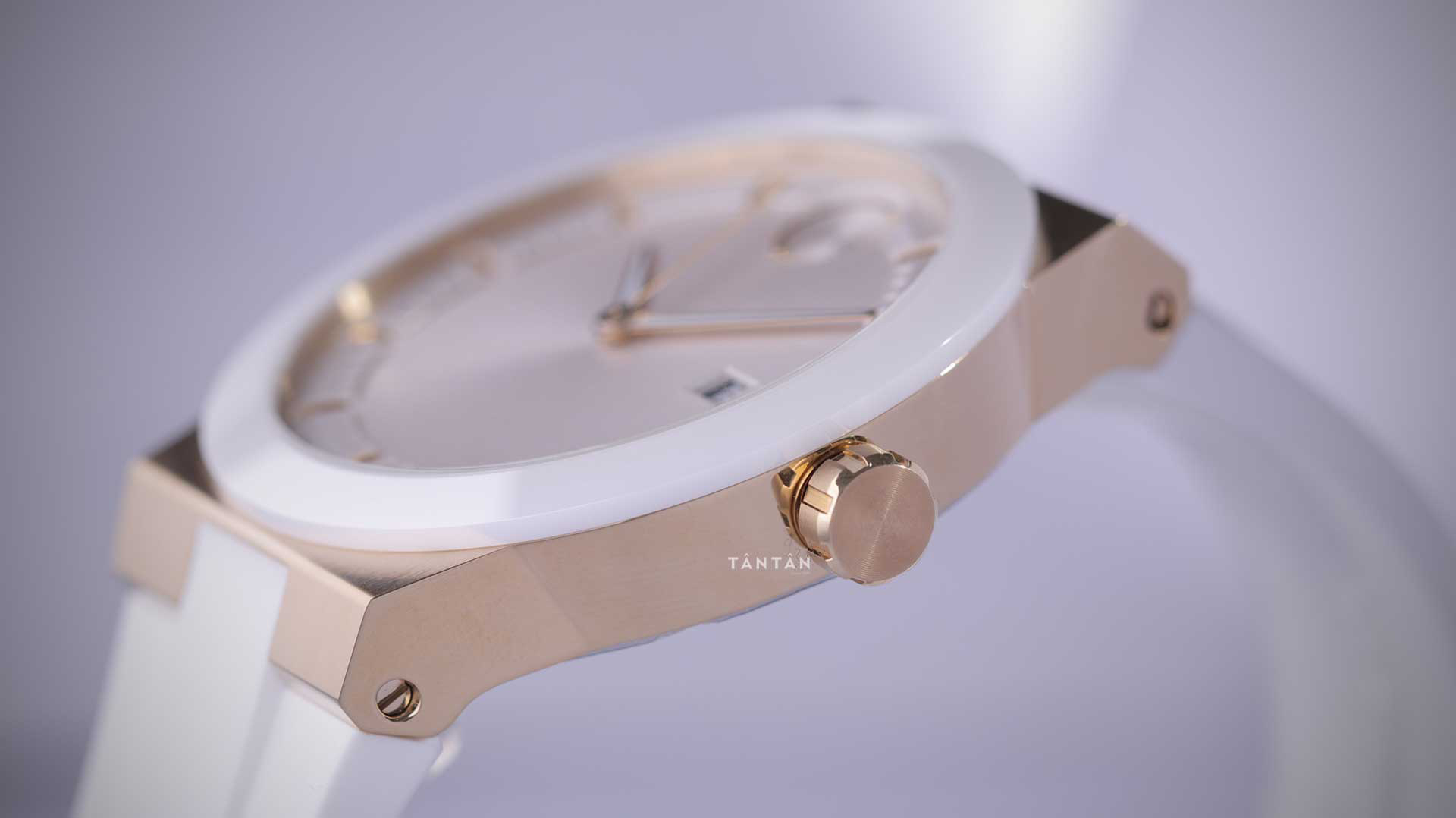 ✓ Mặt số trắng hoàn thiện tia sunray điểm xuyết các chi tiết màu vàng.