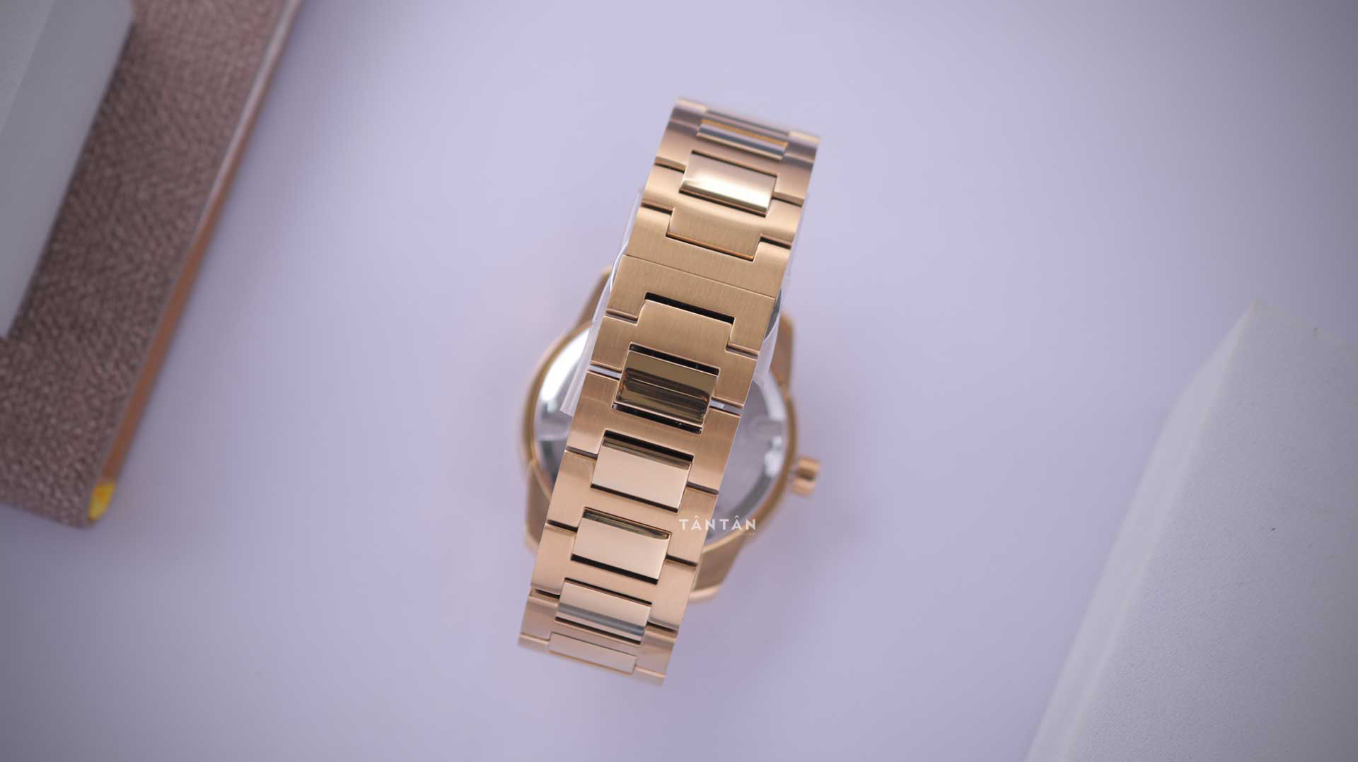 Sử dụng khóa bướm tiện lợi và thẩm mỹ đi kèm dây đeo, phần khóa cong hai bên giúp cố định mặt số đồng hồ không bị dịch chuyển khỏi vị trí ban đầu trên cổ tay tạo cảm giác chắc chắn ôm trọn cổ tay giúp cho người đeo tự tin vận động thoải mái.