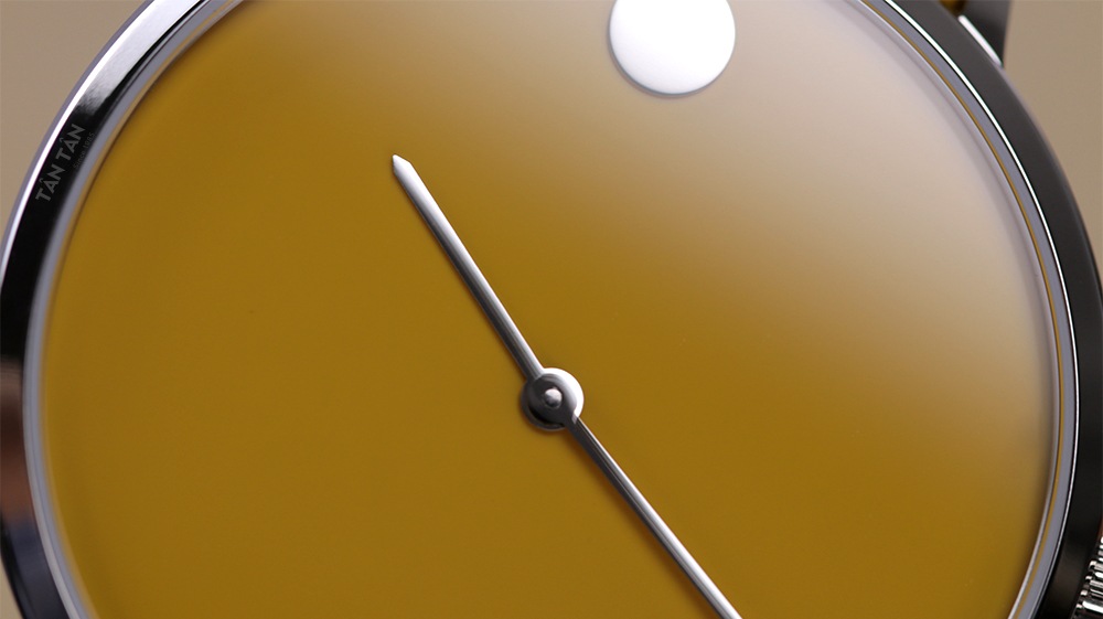 ✓ Mặt số màu vàng nổi bật “một chấm hai kim” đặc trưng của Movado.