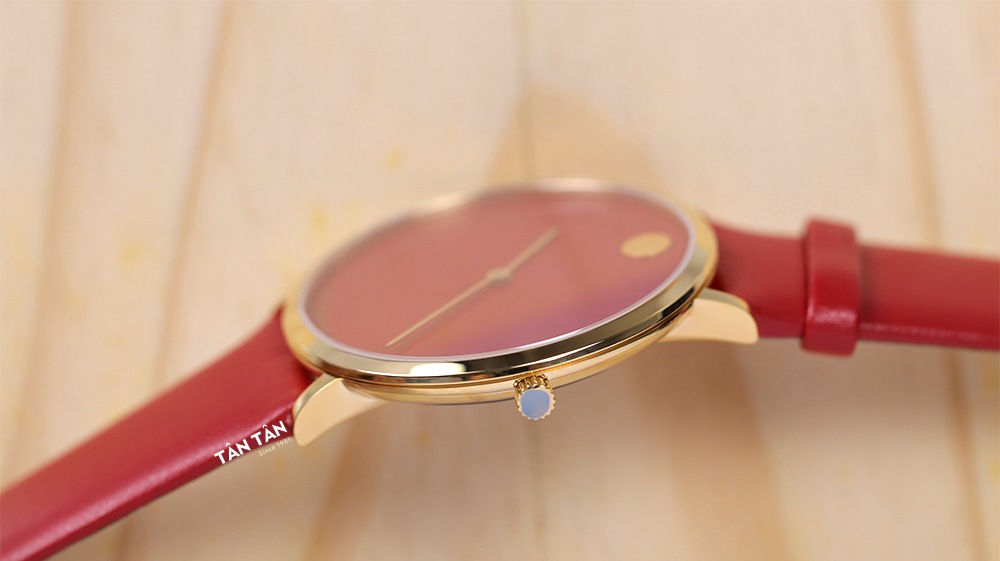 Tổng thể thiết kế đơn giản với tông màu đỏ trẻ trung của Movado 0607253