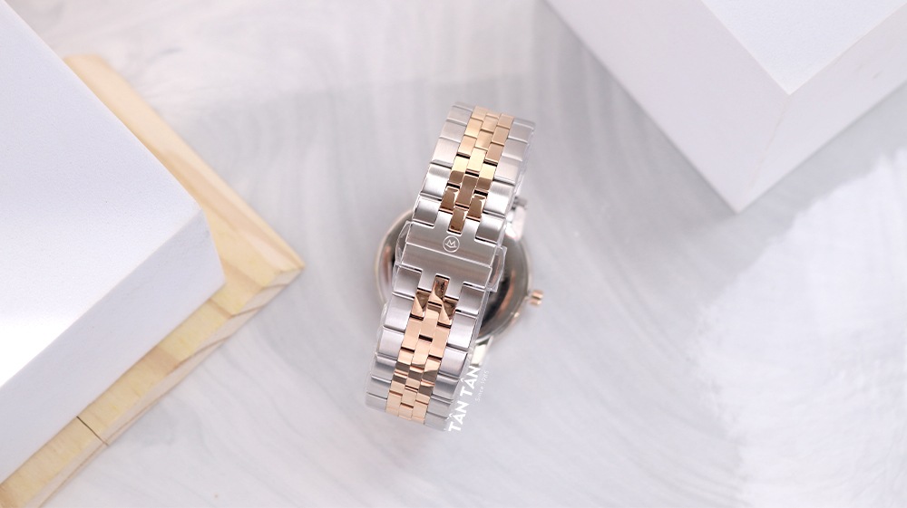 ✓ Dây đeo thép không gỉ phối demi vàng hồng bắt mắt.