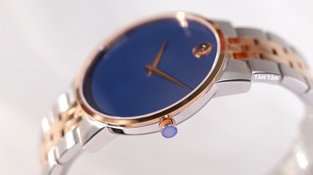 ✓ Mặt số xanh dương trẻ trung đi kèm chấm tròn đặc trưng của nhà Movado.