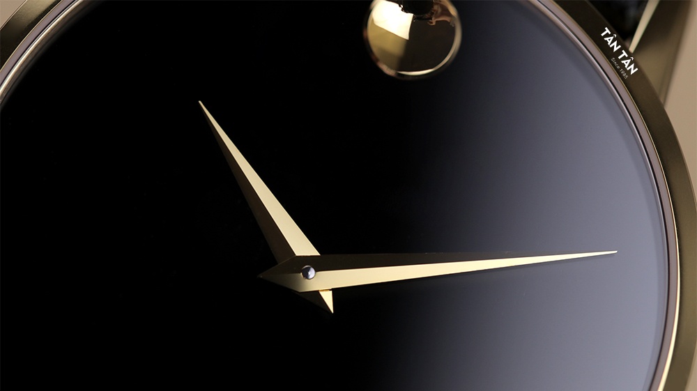 ✓ Mặt số trơn đen tuyền nổi bật “một chấm hai kim” đặc trưng của Movado.