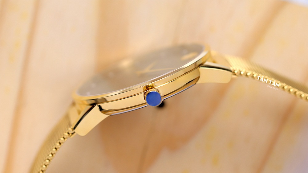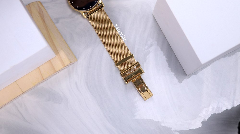✓ Trang bị dây đeo thép không gỉ dạng lưới bền bỉ, mạ màu vàng gold thời thượng, vô cùng hiện đại và hợp thời trang.