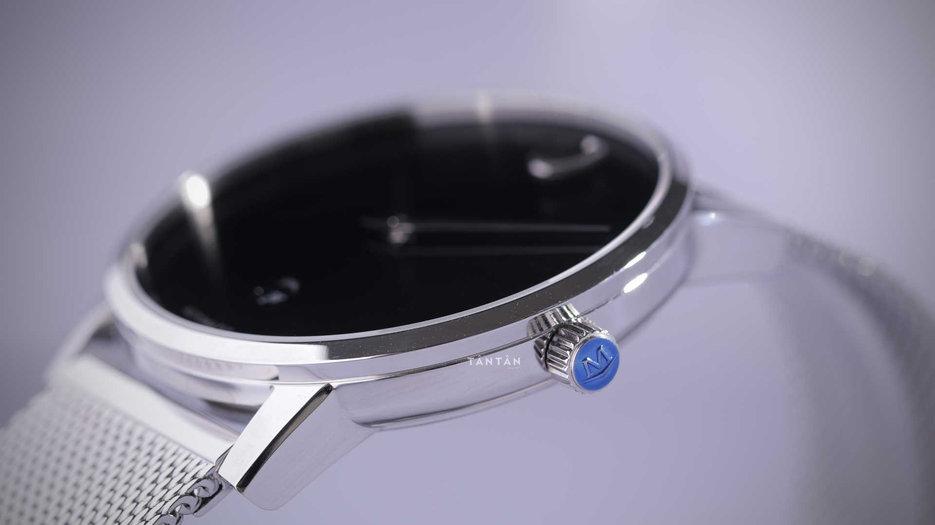 Toàn thân bộ vỏ đều được đánh bóng tạo cảm giác sang chảnh không thể chê vào đâu được. Phần viền của bộ vỏ được mài giũa bo tròn cẩn thận bởi những nghệ nhân có tay nghề cao tạo nên sự mượt mà trong thiết kế. Kết hợp cùng với bộ vỏ thép chắc chắn là núm chỉnh giờ mài khía dễ dàng điều chỉnh. Trên bề mặt núm chỉnh giờ là ký hiệu Movado được in nổi làm nên giá trị thương hiệu.