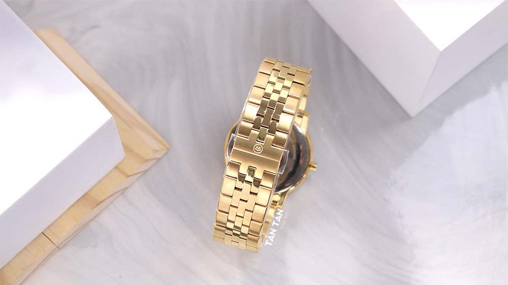 ✓ Dây đeo thiết kế mắt xích phủ màu vàng gold đẹp mắt với khóa cân bằng gọn gàng, chắc chắn.