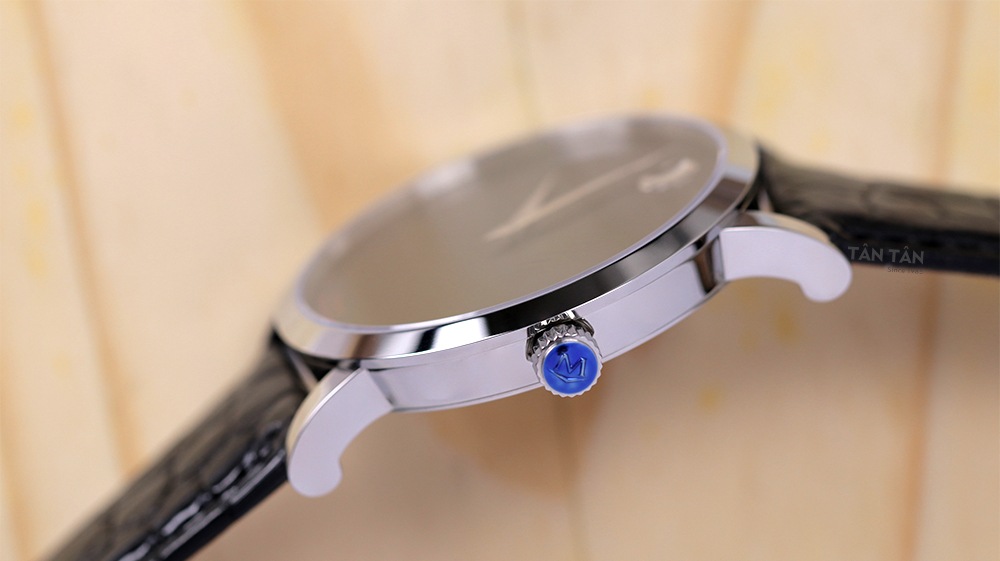Cạnh phải đồng hồ góc 3 giờ là núm chỉnh giờ được chế tác tỉ mỉ, khía rãnh tinh tế xung quanh giúp điều chỉnh thời gian dễ dàng cùng logo Movado - “M” khẳng định chất lượng thương hiệu đến từ Thụy Sĩ.