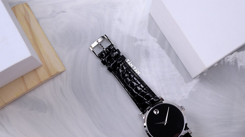Movado 0606112 được thiết kế phần dây đeo với chất liệu da cao cấp với mặt ngoài dập vân sang trọng giúp làm tăng giá trị thẩm mỹ bằng những đường nét tinh tế và thanh lịch. Với phần thiết kế dây da màu đen, chi tiết này giúp cho Movado 0606112 thêm sang trọng và mạnh mẽ đầy nam tính. Thêm vào đó, dọc viền dây được may tỉ mỉ và khéo léo giúp dây đeo thêm bền chắc, qua đó cho thấy được sự tài hoa đến từ bàn tay của những người nghệ nhân hàng đầu thế giới. Đi kèm với dây da cao cấp là khóa cài đơn giản, dễ dàng đeo vào - tháo ra giúp có định chắc chắn đồng hồ trên cổ tay.