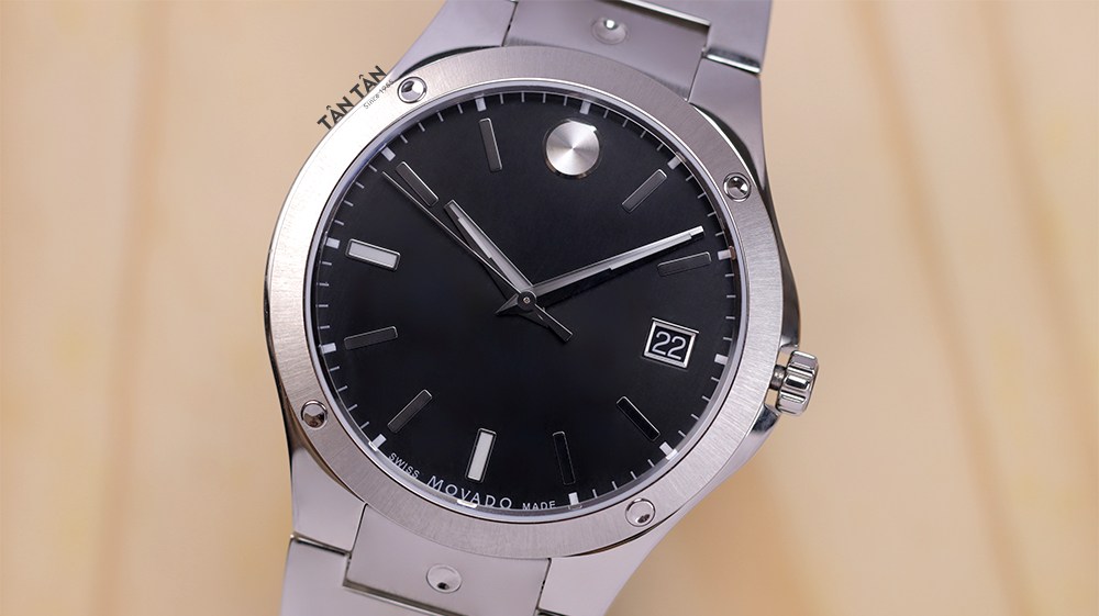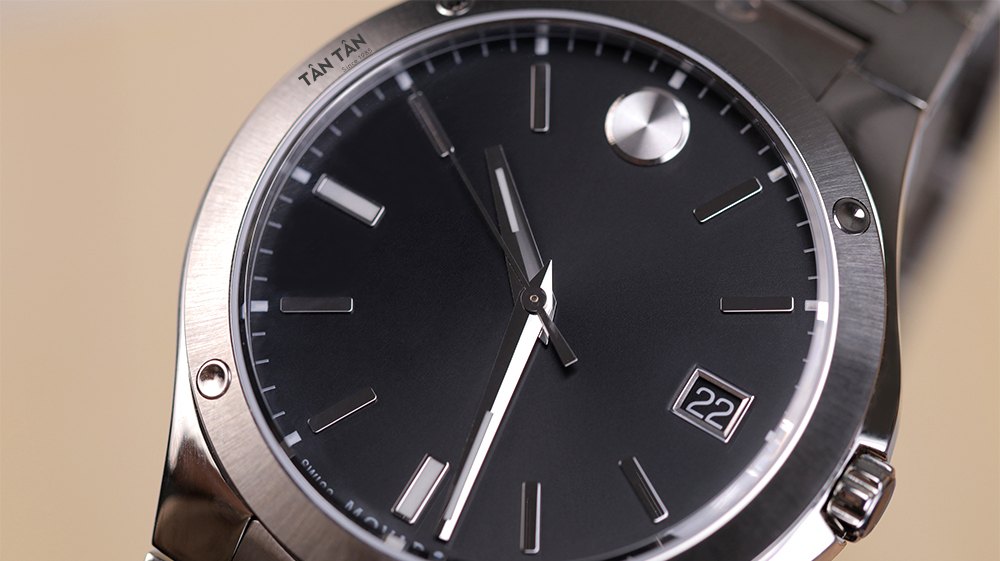 Tại vị trí 3 giờ là ô lịch ngày được đặt gọn gàng trong khung thép giúp các quý ông dễ dàng quản lý thời gian. Tên Movado được uốn cong theo mặt số tại vị trí 6 giờ mang dấu ấn thương hiệu. Bao phủ trên mặt số là lớp kính sapphire trong suốt và chống xước hoàn hảo, được trang bị 1 lớp chống lóa AR tạo nên trải nghiệm quan sát vượt trội.