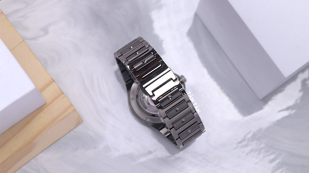 ✓ Bộ vỏ và dây đeo thép không gỉ mạ màu xám PVD mới lạ được đánh sớ mờ tỉ mỉ, tinh tế.
