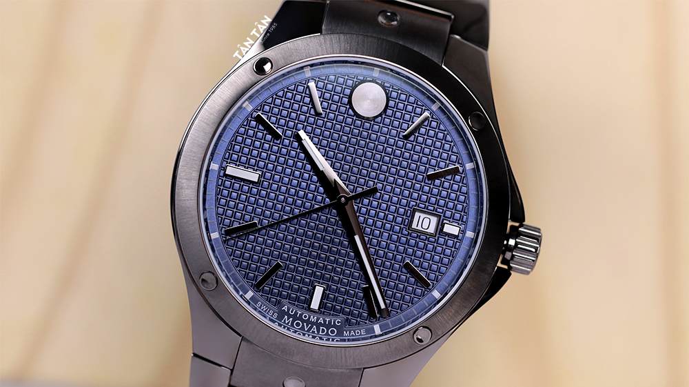 Tại vị trí 3 giờ là ô lịch ngày được đặt gọn gàng trong khung thép giúp các quý ông dễ dàng quản lý thời gian. Ký hiệu bộ máy Automatic và tên Movado được uốn cong theo mặt số tại vị trí 6 giờ mang dấu ấn thương hiệu. Bao phủ trên mặt số là lớp kính sapphire trong suốt và chống xước hoàn hảo, được trang bị 1 lớp chống lóa AR tạo nên trải nghiệm quan sát vượt trội.
