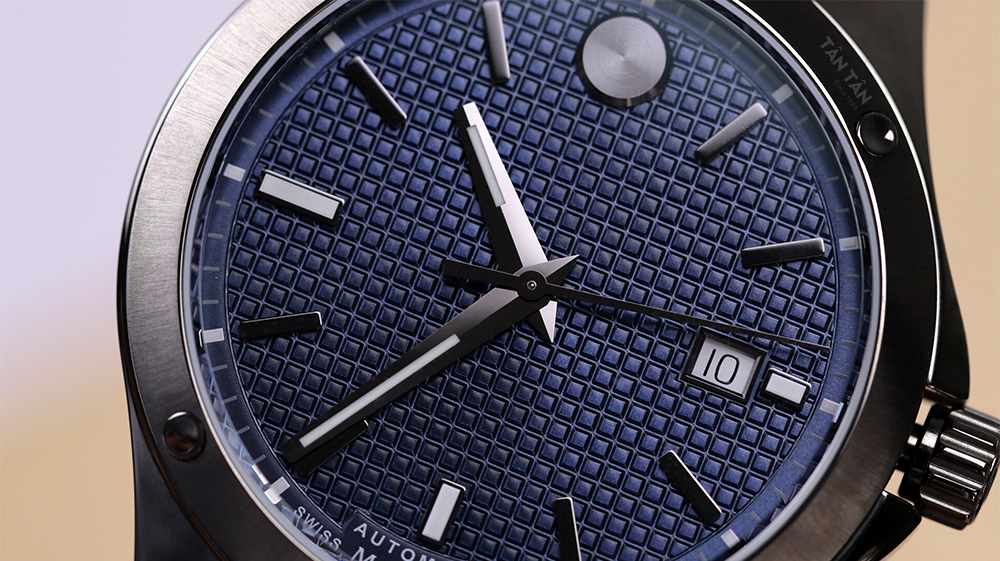 Mặt số đồng hồ Movado 0607553 mang vẻ đẹp sắc nét và được hoàn thiện với kỹ thuật cao. Nhìn sâu vào bên trong, phần nền sử dụng họa tiết Grande Tapisserie dạng khối vuông chạy dọc khắp mặt số mang đến sự sang trọng, đây là chi tiết thường thấy ở những mẫu đồng hồ cao cấp. Màu xanh dương của mặt số càng làm tăng thêm nét trẻ trung, nam tính và mạnh mẽ của một chiếc đồng hồ phong cách thể thao này.
