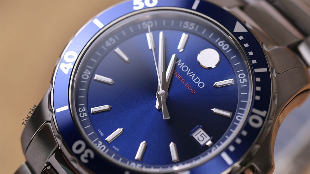 Khi ánh nhìn đầu tiên chạm vào mặt số Movado 2600137, bạn sẽ ngay lập tức đắm chìm vào sự tươi mát và cuốn hút của tone màu xanh dương chủ đạo với cách hoàn thiện tia sunray thời thượng. Trung tâm mặt số là bộ kim dauphine màu bạc cách điệu được cắt gọt sắc sảo và mạnh mẽ để phù hợp với tinh thần thể thao năng động thổi vào chiếc đồng hồ này. Xung quanh là bộ cọc số được sắp xếp đều đặn trên một vòng chia phút giúp người xem dễ dàng quan sát giờ giấc. Tất cả các chi tiết này được phủ 1 lớp dạ quang SuperLuminova hỗ trợ xem thời gian trong bóng tối, đặc biệt là khi lặn sâu.
