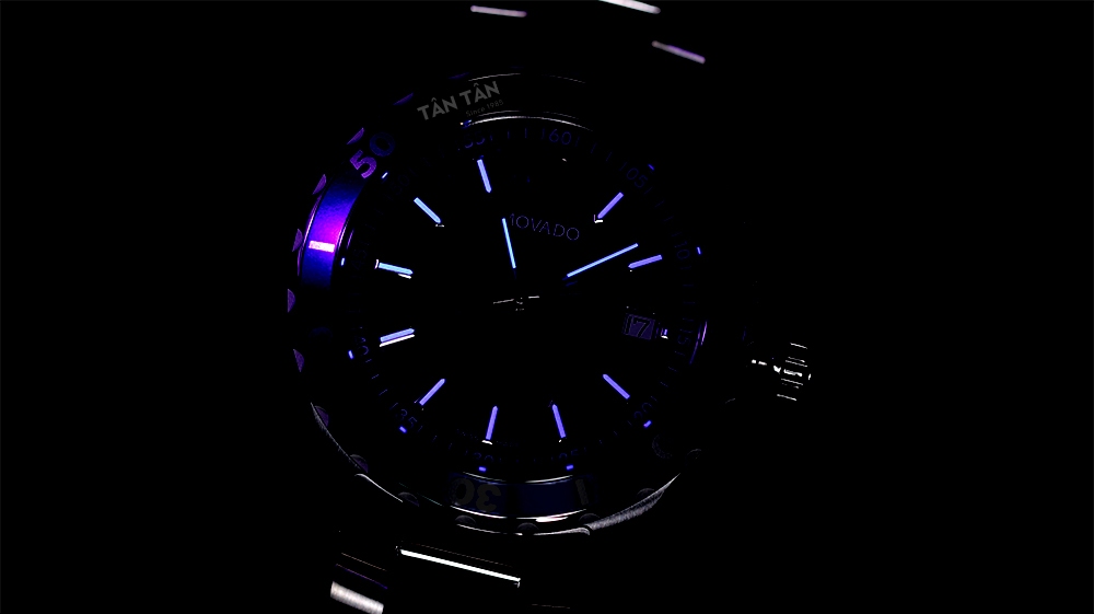 Phủ dạ quang cao cấp Thụy Sĩ SuperLuminova trên các mốc giờ và bộ kim