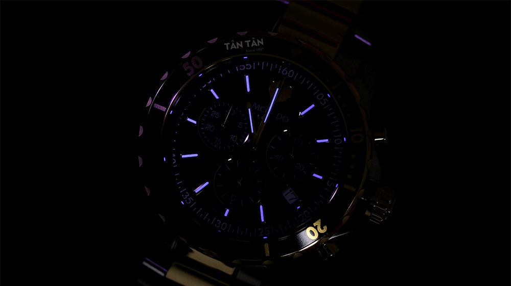 ✓ Mặt số vàng-đen Multi-Dial với đầy đủ chức năng Chronograph, dạ quang, lịch ngày và giờ 12.