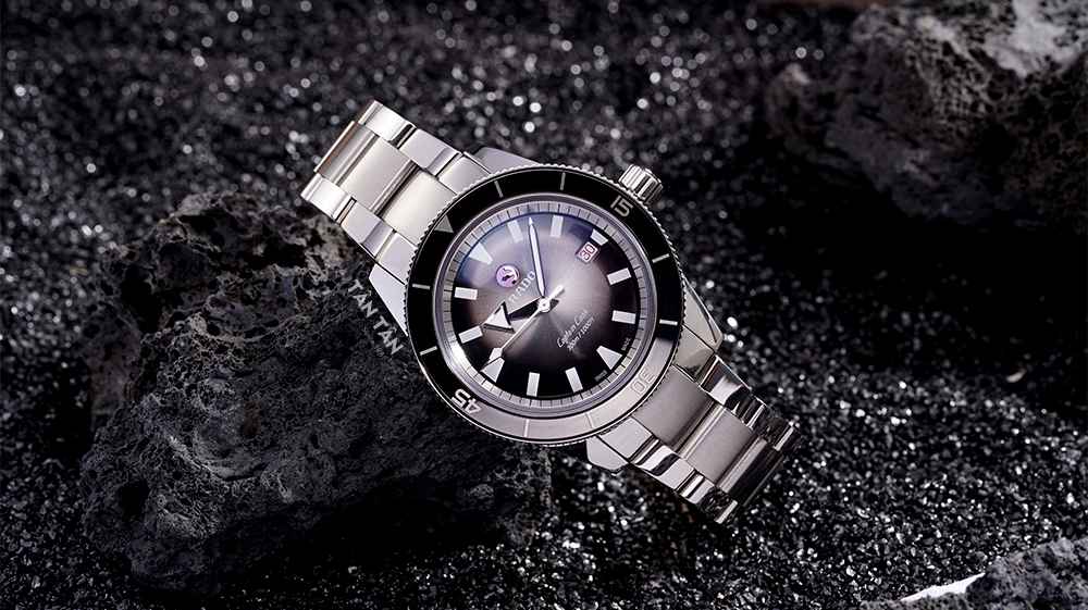 Mặt số màu đen chải tia sunburst tạo hiệu ứng ánh sáng rất đẹp mắt