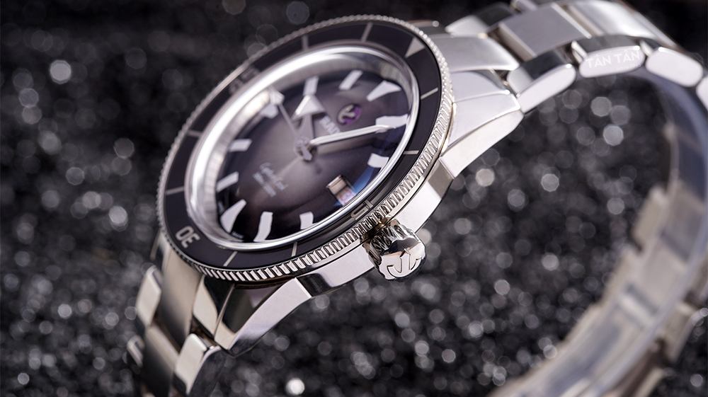 Kết hợp cùng với bộ vỏ thép không gỉ là khung viền bezel bằng gốm Ceramic hay được thấy trong các mẫu đồng hồ lặn. Viền benzel này được thiết kế đổ xuống, có cấu tạo 120 nấc và chỉ xoay được 1 chiều đảm bảo an toàn khi lặn sâu. Các khớp nối của viền đều được hoàn thiện tỉ mỉ tạo nên âm thanh rất êm tai khi xoay. Kết hợp với bộ vỏ là núm chỉnh giờ được đặt tại vị trí 3 giờ thân thuộc rất dễ sử dụng.